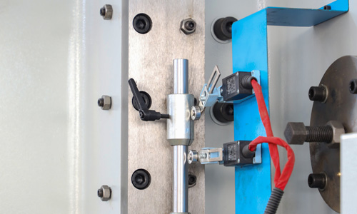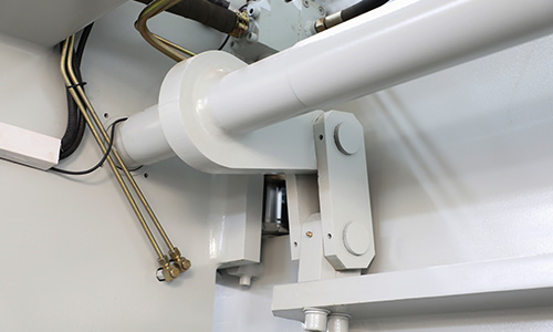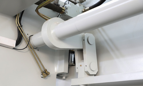 液壓上傳動(dòng)滑塊同步機(jī)構(gòu)采用扭軸強(qiáng)迫同步和機(jī)械擋塊,可選配國(guó)產(chǎn)和進(jìn)口系統(tǒng),工作臺(tái)可選撓度補(bǔ)償機(jī)構(gòu)。